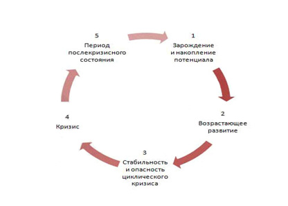 Как и всякая другая система, организация проходит разные периоды «жизни»: зарождается, развивается, переживает периоды становления, расцвета, затем упадка, после чего полностью перерождается или сменяется другими компаниями.